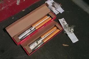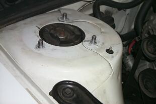 The KONI's in the boxes. Top of the front strut tower with plate and strut brace removed