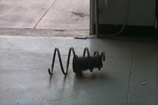 Front suspension coming out. My front spring and dust boot.