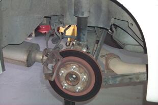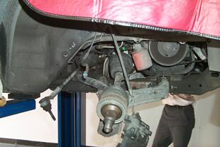 Rear suspension. Rear strut removed.