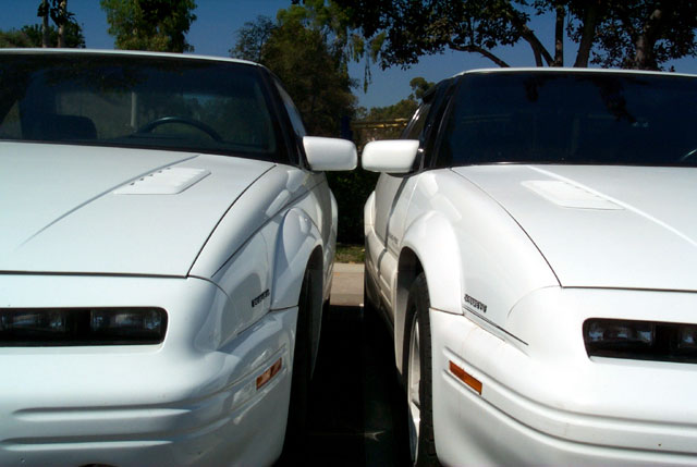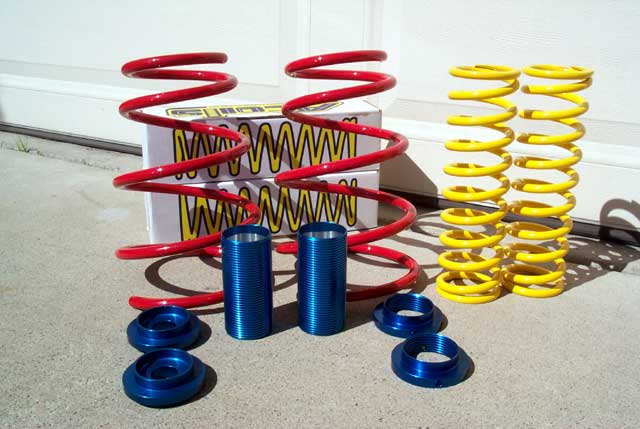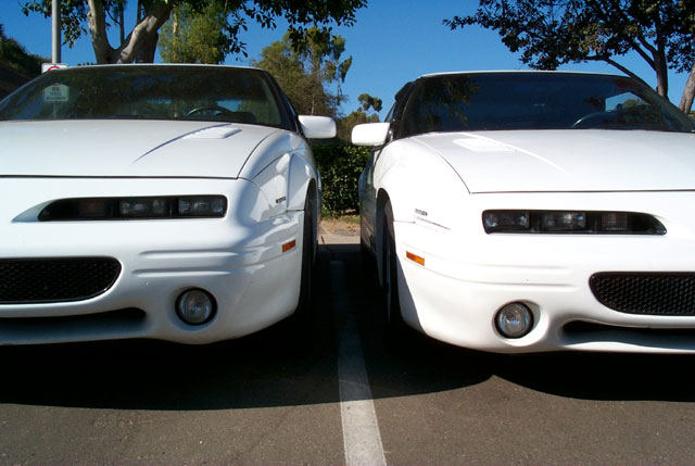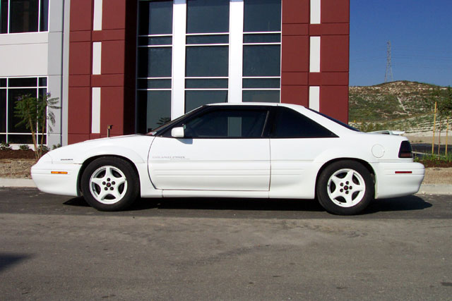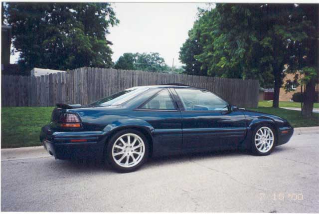 8\19\00: My repeated attempts to call Charged Air Systems about getting a intercooler before the gathering have fallen on deaf ears. They are really missing the boat if they don't have them available for sale by the gathering which is approaching a month away. I replaced the corrugatred rubber connector on my SLP airbox with a metal elbow. I'm sure it did'nt at much power (if at all) but I saw it as a restriction and it was a easy fix. Before shot is here and after shot is here. Not much else has been going on with the car and unless a intercooler comes before the gathering its likely to stay that was for some time. With money being temporarly diverted from the car I did go out and purchase a new higher res digital camera for the Grand Prix Gathering next month, a toolbox and this. And to prevent people from e-mailing me in a "You gave up on cars?!?!" attitude....I've had a bike all along...this is just a new one. A couple weeks back my friend Steve bought a twindualcam.com lowering kit and he came over to install it. Both of us having the same cars appearence wise we got some pretty good before and after shots of what the car looks lowered. Its a pain in the ass to install so if your not comfortable using tools, better have a suspension place do the work. The ride of the car itself after being lowered is practically unchanged, just a tad firmer over the bumps then before. As for handling I know what the kit is capable having one on the 89SE for a few weeks time while it was being developed and he is very happy with it. The jury is still out but he claims one of his headlights cracked and\or went out during a sharp cornering manuver..could it be THAT good??!?!, haha. Here is a picture of the all important before shot with both cars mirror to mirror. And a after mirror to mirror picture showing the 1.5 inch drop. The componants of the kit itself are pretty simple but the mounts the rear coilovers use are custom cut. The springrates are progressive and firm up under hard cornering but leave a nice ride. I'm glad they decided to go with a firmer springrate on the rear (yellow springs in picture), the blue ones that where on the 89SE where not firm enough and under real severe cornering would roll the body of the car to much off axis. The complete lowering package picture is here. And last but not least the side profile of the car showing the reduction in fenderwell gap. For people who may ask....yes you can use this kit with 17inch wheels. In fact you can still even use 18inch wheels, 1 such person named Joe Rice has already added them to his 94 GTP. View scanned in pictures of his car here and here.