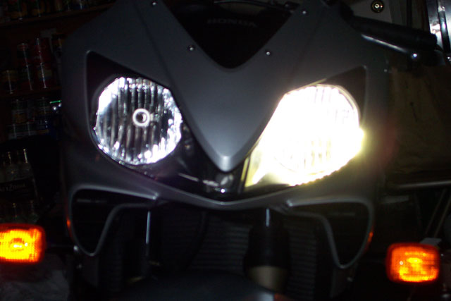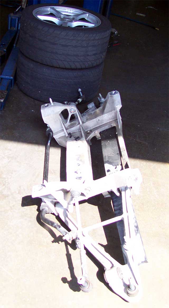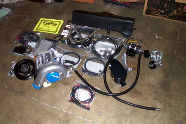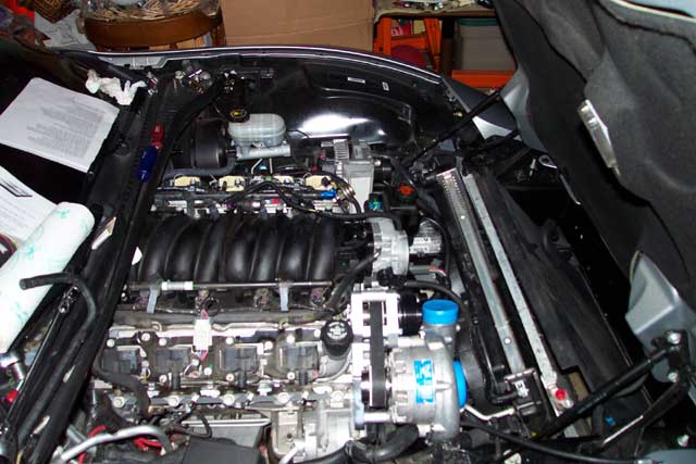 4\15\01: Well so much for being "tame" on the modifications to the vette. Not happy with well enough I researched porting/polishing of the heads as well as some additional intake work but without doing a camshaft I would still have a hard time reaching 350HP at the wheels which is right around 400HP at the crank. Not wanting to do a camshaft for installation and idle reasons I decided to scrap the heads idea and go big. This is what i'm currently installing. The kit is made by www.CarrollSupercharging.com and uses a Vortech blower. Its all but done but Carroll forgot to send me a couple important parts needed to finish the job. Its expected to hit 400+HP at the wheels and be nearly 500HP at the crankshaft. I get to reuse the Titanium exhaust and my air filter so at least that's not money wasted. I have a almost complete installation picture of the supercharger here. I'm still constantly amazed at the space I still have in the vette to throw things. Here's a picture of 2 17inch and 2 18inch rims in back. Other then that not allot happening. I installed a high intensity discharge headlight system on the bike here. If you haven't heard already its been announced that the redesigned 2003 Grand Prix will reuse the Supercharged 3.8L engine. This is MOST disappointing to me as I was holding out for a all new redesigned engine as I had heard about straight from people at GM. But with the Oldsmobile line being killed off so did the engine since it was going to be a multi-platform engine. I'll hold out final judgment but this is probably going to be the 1 thing killing me from buying another GTP. Lets at least hope they do something about the transmission.
